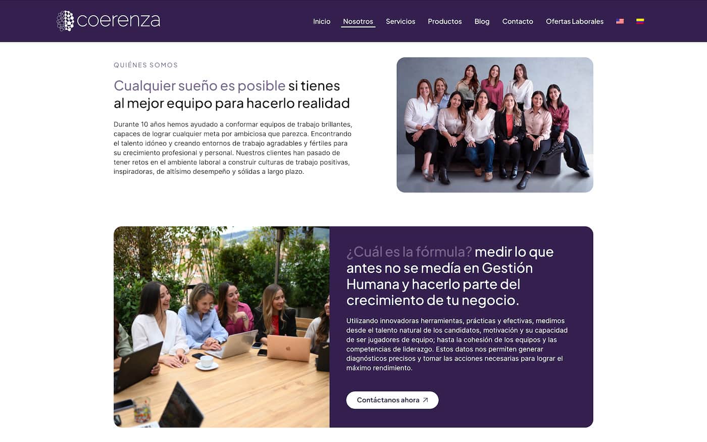 Coerenza helps companies build high-performing teams through data-driven talent selection, culture diagnostics, and leadership development. I created a custom site that reflects their human-centered approach with clean design, soft tones, and clear messaging — aligning their values with a modern digital experience.